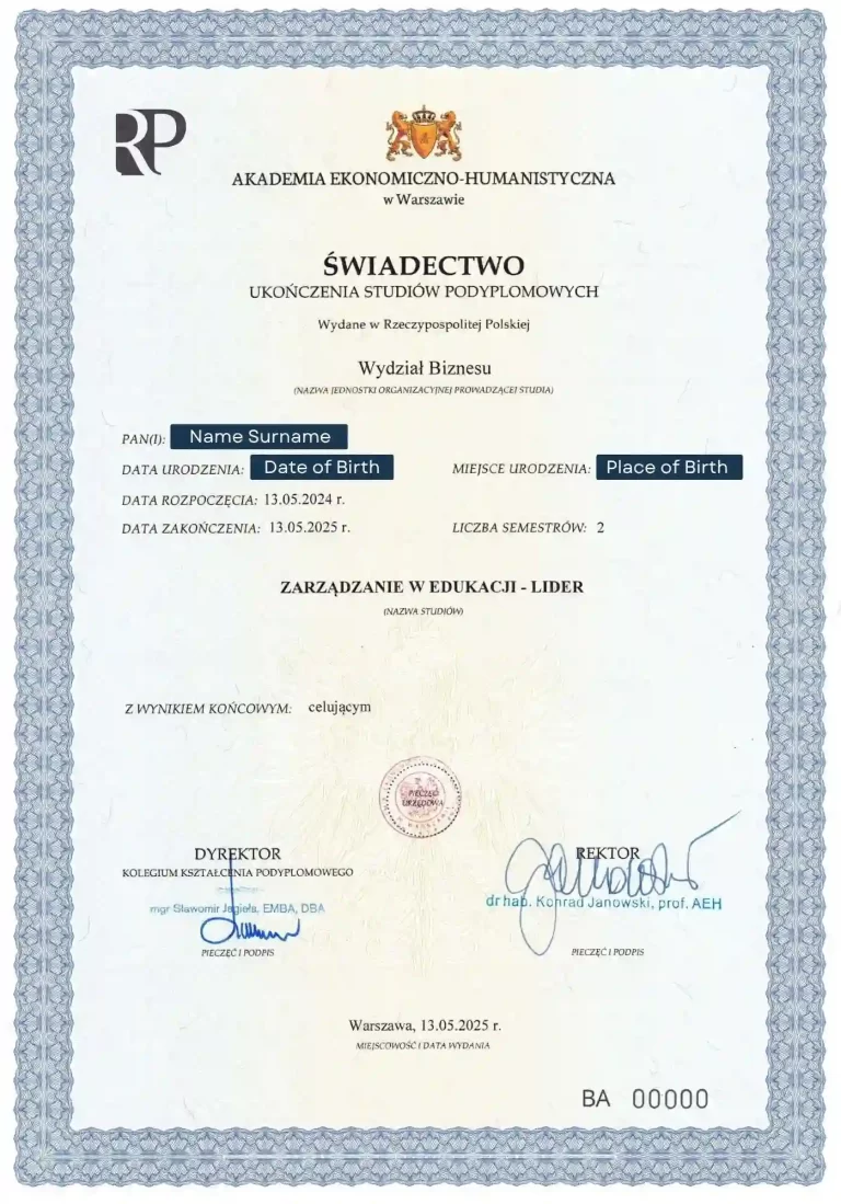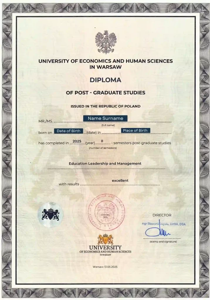Developed in partnership with Vizja University, the Social Pedagogy Postgraduate Program focuses on supporting social development through educational and value-based approaches. The program equips participants with both theoretical insight and practice-oriented skills to work with children, youth, the elderly, and individuals in need of guidance. Graduates receive a Postgraduate Diploma (60 ECTS) with European recognition.
